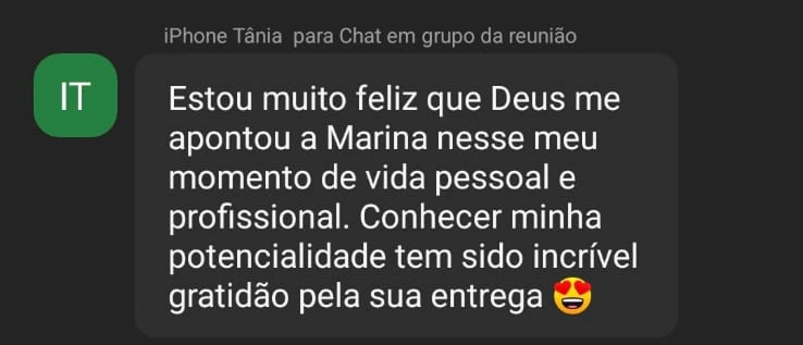 Marina acredita que a música e o canto tem um chamado especial, e uma hora você irá confronta-lo e com dedicação e estudo, pode conquista-lo, pois segundo ela: